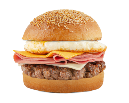El Yapımı Köfte, Yumurta, Cheddar Peyniri, Kaşar Peyniri, Dana Jambon, Turşu, Mayonez, Özel Sos, Patates Cipsi